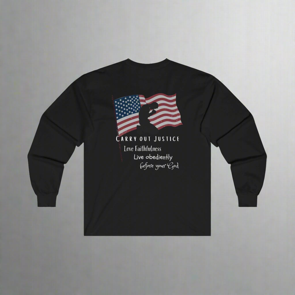 A bit more formal than a standard-issue t-shirt, the ultra cotton long sleeve tee is a clear comfort winner. The sleeves also act as a nice frame. There are no side seams. The shoulders are taped for improved durability. This makes for a good fitting around the shoulders and neck. The cotton used for these shirts is environmentally friendly.